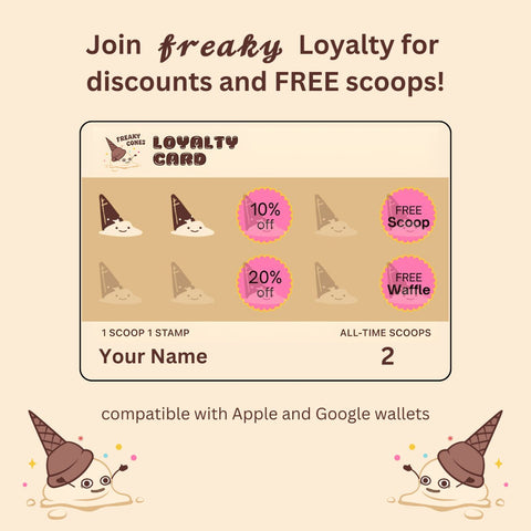 Join our Loyalty Program to reward yourself with discounts and free scoops! (: